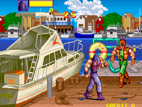 第2ステージは『ファイナルファイト』のような場所で特徴はありません。中ボスは雑魚キャラにしか見えない黒人の多分ボクサー。ボスは肩アーマーに棘がついた世紀末な感じの拳士です。