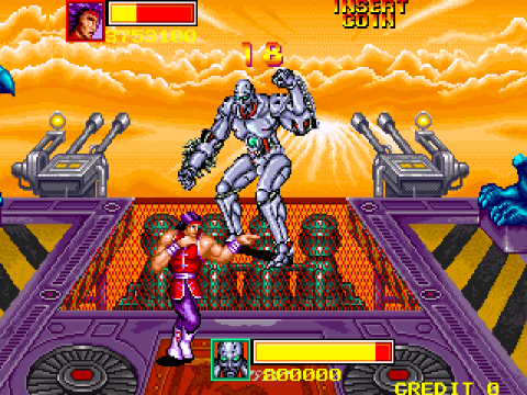 そしてボスです。敵の総裁のマッドサイエンティストなDr.バイオ。一応変身します。第一段階はホバーマシンに乗った状態、第2形態はロボットです。ロボットは起き攻めすると無敵の反撃を食らうので離れて連打が楽です。